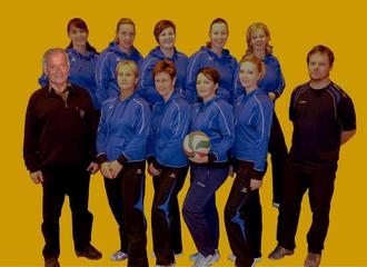 Günther Warecka (links) mit Co-Trainer Ivo Pilz (rechts) und der 2. Damenmannschaft 2014