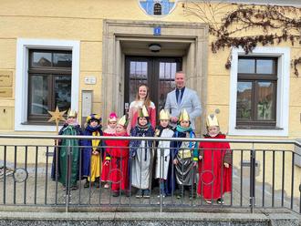 Die Kita „Kleine Weltentdecker“ war Anfang Januar mit den Sternsingern unterwegs. Bürgermeister Maik Hirdina begrüßte die kleinen Gäste im Rathaus.