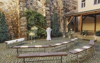 Wir bieten Eheschließungen auf Burg Stolpen, im Trauzimmer, sowie im romantischen Innenhof und im Rats- und Bürgersaal des Alten Amtsgerichtes an.
