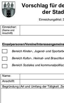 | Die Verleihung kann insgesamt an bis zu 3 Personen/Vereine/Interessengemeinschaften in den Kategorien | |