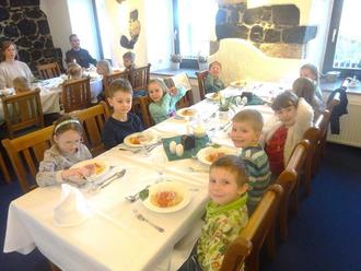Am Freitag, dem 08.03.2024 gab es für die Vorschüler der „Stolpner Burggeister“ ein ganz besonderes Highlight. Wir gingen essen und zwar in das Burghotel der Stadt.