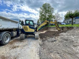 Im Auftrag der Stadt Stolpen hat die Tiefbaufirma von Detlef Hartig die Bauarbeiten in Langenwolmsdorf Niederdorf zur Errichtung von zwei neuen Bushaltestellen begonnen.