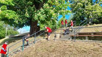 Von den durch die Firma OBI über den Jugendring zur Verfügung gestellten Gutscheine wurden Staubmasken sowie Handschuhe in Kindergrößen versorgt und entsprechend angewendet. Die Beschaffung der Farbe und Streichutensilien erfolgte über den Unterstützungsbeitrag von Seiten der Stadt Stolpen. Mittels zur Verfügung gestellter Freischneider vom Bauhof wurden die Hänge am Sportplatz vom Gras befreit.