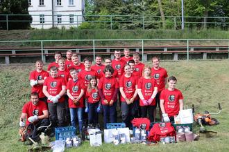 Die Abholung des Grünschnittes erfolgte durch die Mitarbeiter des Bauhofes. Um ein einheitliches Auftreten gewährleisten zu können, wurden alle Beteiligten mittels T-Shirts der 48h-Aktion ausgestattet und durch unsere Reni optimal auf dem Gruppenbild verewigt.