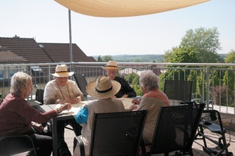 Die Terrasse oder die Sitzecke vor unserem Eingang ist mehr als nur ein Ort zum Verweilen. Sie ist ein Treffpunkt für Gemeinschaft, Bewegung und Lebensfreude. Gerade jetzt im Frühling, wo es wieder wärmer draußen wird, bieten unsere Bereiche im Freien gute Voraussetzungen für tolle Beschäftigungen, die sowohl die körperliche als auch die geistige Gesundheit der Bewohner fördern z.B. leichte Gymnastikübungen, Bewegungsspiele mit dem Ball, vielseitiges Gedächtnistraining und Unterhaltung mit Musik. Manche Senioren wagen auch ein Tänzchen. All das wirkt sich positiv auf unsere Bewohner aus und sie erleben den Alltag aktiver und selbstbestimmter.