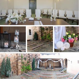 Wir bieten Eheschließungen auf Burg Stolpen, im Trauzimmer, sowie im romantischen Innenhof und im Rats- und Bürgersaal des Alten Amtsgerichtes an. Auf Burg Stolpen finden Eheschließungen überwiegend nur ausgewählten Samstagen statt. Die Kasematte auf Burg Stolpen bietet Platz für 35 Personen, der Innenhof und der Rats- und Bürgersaal für 60 Personen und das Trauzimmer für 30 Personen.