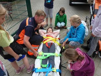 Kurz vor Schuljahresende besuchte uns der Rettungswagen vom DRK Sebnitz. Herr Koberger und seine Kollegin gaben uns viele spannende Einblicke in die Erste Hilfe. Wir bekamen den Rettungswagen erklärt und durften ihn von innen begutachten. Zum Glück waren bei uns Puls und Sauerstoffsättigung im normalen Bereich. Lia wurde auf einer Vakuummatratze festgeschnallt und bei anderen Kindern verschiedene Verbände angelegt. Sogar die stabile Seitenlage und die Herzdruckmassage an einer Puppe konnten wir üben. Es ist nie zu früh mit 1. Hilfe zu beginnen, um für den Ernstfall gewappnet zu sein. Wir werden dieses wichtige Thema in der Zukunft fortführen und weiter ausbauen.