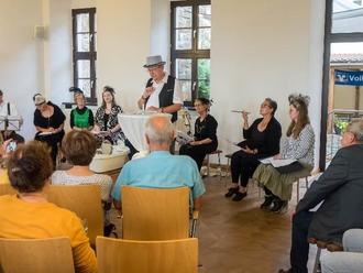 Es war ein farbenfroher Abend, gewürzt mit musikalischen Einlagen durch Juliane Pitzschel und Jens Opitz. Carsta Fanger sorgte für Textauswahl, Hintergrundrecherche und Programmgestaltung.