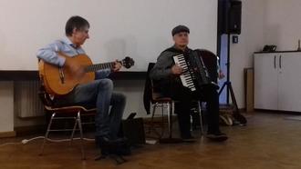 Das „Gypsy-Style-Duo“ mit Alexander Kens an der Gitarre und Igor Danylyuk am Akkordeon verzauberte das Publikum mit Gypsy-Manouche-Swing. Bekannt wurde diese Musik, eine Mischung aus Jazz, Musette und Sinti-Musik, durch den in Belgien geborenen Gitarristen Django Reinhardt. Das abwechslungsreiche Programm der beiden Künstler, virtuos interpretiert, wurde vom Publikum mit stürmischem und langanhaltendem Applaus honoriert.
