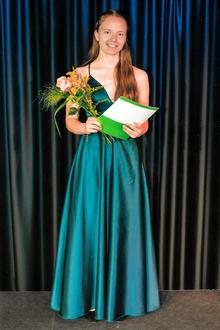 (Foto auf Titelseite im letzten Anzeiger) Mit Celine R. gab es eine Schülerin, die einen sehr guten Abschluss erreichte (1,08) und dafür auch von Landrat Michael Geisler auf Schloss Weesenstein ausgezeichnet wurde.