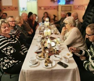 Die Zeit verging wie im Flug und das Abendessen rückte heran. Ein wunderbares Buffet wurde aufgetragen, von Kartoffelsalat, über Braten, Hähnchenkeulen, Hühnerfrikassee, Brötchen mit Hackepeter, Salat und Würstchen war alles dabei, was das Herz begehrt. Eine unerwartete Überraschung, fast ein kleines Weihnachtswunder gab es nach dem Abendessen. Ramona Reichold und Daniel Nowigk hatten an diesem Tag geschlachtet und kamen mit einer großen Schüssel mit frischen Grützwürsten für unsere Seniorinnen und Senioren, so dass jeder eine Wurst mit nach Hause nehmen konnte.