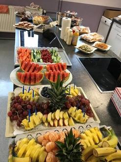 Nach dem ersten 90-minütigen Workshop am Vormittag konnten sich die Mädchen in der Mittagspause an einem bunten Buffet stärken, welches die Jugendsozialarbeiterinnen für alle zauberten.