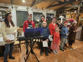 Neben Keyboard und Gesang kam sogar der Weihnachtsmann, der zwischendrin einfach einen Stuhl nahm und dem Programm begeistert lauschte.