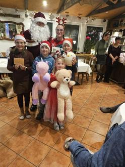 Nachdem das Abschlusslied „Laßt uns froh und munter sein“ gemeinsam mit den Rentnern verhallte, übernahm plötzlich der Weihnachtsmann. Er dankte den Kindern, die jedes Jahr ein schönes Programm machen und übergab Kuscheltiere und kleine Präsente.