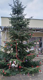 Wie in jedem Jahr haben die Kinder der Kita „Lustige Früchtchen" von Byhleguhre die Tanne vor dem „Alten Konsum" wieder mit selbst Gebastelten, Sternen und Weihnachtskugeln geschmückt. Haben sie das nicht wieder toll gemacht?