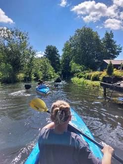 So ging es in der 1. Ferienwoche bei tollem Wetter ab ins Paddelboot. Gemeinsam mit Jugendlichen der Ludwig Leichhardt Oberschule Goyatz und ihrer Sozialarbeiterin Jana Beinio startete die Gruppe zu einem 2-stündigen Paddelausflug. Start und Ziel waren dabei der Biberhof in Burg (Spreewald), bei dem es im Anschluss zur Abkühlung noch ein Eis für jeden gab.