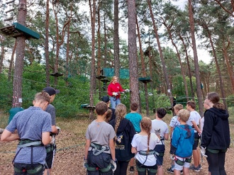 Zwei Tage später fand bei bestem Kletterwetter wieder gemeinsam mit Schülern und der Sozialarbeiterin der Ludwig Leichhardt Oberschule Goyatz ein Ausflug in den Kletterwald in Lübben statt. Auch dort hatten die Teilnehmer und Teilnehmerinnen ca. 2 Stunden Zeit, sich zwischen den Bäumen auszutoben, bevor es danach zur Stärkung erneut ein Eis gab.