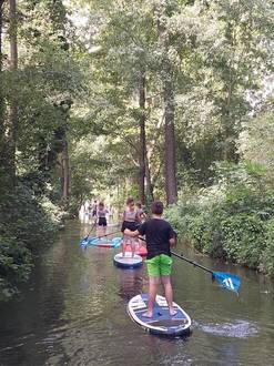 Zwei Tage später ging es dann in Burg (Spreewald) aufs Board. Nach einer kurzen Einführung konnten sich die Teilnehmer und Teilnehmerinnen selbst im Stand Up Paddling ausprobieren.