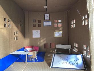 Jannis baute ein Stadion (natürlich von Energie Cottbus) mit der einen Seite jubelnder Fans, während auf der Rückseite die Menge wütend war und brüllte. Liam baute den Baum der Liebe, an dem sich die Spieler im Stück trösten konnten. Mia hatte sich das schwebende Haus der Angst ausgedacht. Hier konnte gut nachvollzogen werden, dass Angst einem den Boden unter den Füßen wegzieht. Das Haus bewegte sich von den Kindern leicht an Bändern gezogen hin und her. Auch die Gespenster aus Gießkannen zu bauen hat viel Spaß gemacht. Daneben wurde die Geschichte formuliert, zum Teil von den Kindern selbst eingesprochen und an den Texten gefeilt. Dabei erhielten die Kinder Unterstützung von Sylke Hannasky, die mit viel Geschick und Sensibilität die Akteure anleitete. Eine Weltausstellung sollte es werden, wo die Reporterinnen um die beste Geschichte antraten.