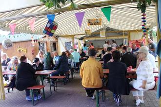 Der Sonnabend begann bei den Vereinsmitgliedern mit Daumendrücken, dass sich das Wetter hält und es zumindest nicht regnet. Inzwischen wissen wir, dass das richtig gut geholfen hat, denn am Nachmittag kam sogar die Sonne raus. Bis zum Beginn des Festes wurde auch die Tombola aufgebaut, der Bierwagen fertig bestückt, Kaffee gekocht und das Kuchenbüffet hergerichtet, die große Hüpfburg wurde startklar gemacht und bei Paule im Häuschen die Retro-Gaming-Stationen eingerichtet, eben die tausend Kleinigkeiten, die erledigt sein wollen, bevor die Gäste kommen.