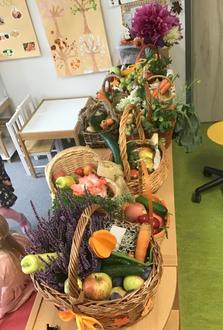 Im Morgenkreis haben wir die Körbchen gemeinsam betrachtet und darüber gesprochen, woher unser Essen kommt und warum es wichtig ist, dankbar dafür zu sein. Danach wurde gespielt, gelacht und ausprobiert: Bei lustigen Spielen rund um das Thema „Ernte“ konnten die Kinder ihr Wissen, ihre Geschicklichkeit und Teamfähigkeit unter Beweis stellen.