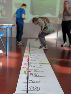 Die Aufregung war spürbar, als die Gruppe in den Zug nach Halbe stieg. Unterwegs stieß auch Jugendsozialarbeiterin Madlen (Amt Schenkenländchen) dazu. Gemeinsam in Halbe angekommen machten wir uns auf den Weg zur „Alten Schule“, wo uns Josephine, Jugendsozialarbeiterin und Fachkraft für historisch-politische Jugendbildung im LDS, begrüßte. Sie hatte ein spannendes Programm vorbereitet, dass uns mit vielen kreativen Methoden und einem fesselnden PowerPoint-Vortrag in die Geschichte des Kessels von Halbe einführte. Sie beantwortete all unsere offenen Fragen, was uns sehr geholfen hat, die Zusammenhänge besser zu verstehen.