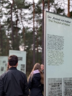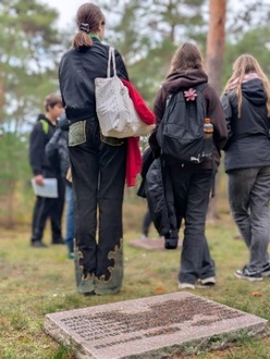 Nach einem stärkenden Imbiss, den die Sozialarbeiterinnen für uns vorbereitet hatten, brach die Gruppe zum Waldfriedhof auf. Überrascht von der unvorstellbaren Größe des Friedhofs wurde uns nun langsam das ganze Ausmaß bewusst, was damals passiert sein musste. Josephine erklärte uns, wie man sich anhand der Aufzeichnungen dort zurechtfand und brachte uns die Kesselschlacht von Halbe näher.