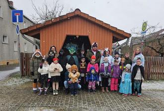 … mit „Zamper Zamper Gasse, Geld in die Kasse“ und „Klingeling und Bumm bumm bumm“ zogen die Kinder am Samstag, 14.02.2026 vormittags durchs Dorf. Begleitet wurden die Jesserner Kinder von Freunden oder zamperfreudigen Kindern aus den Nachbarorten. So ergab es sich, dass eine schöne, bunte Truppe durchs Dorf zog und an den Eingangstüren um Geld und Süßes baten. Die Jesserner Bewohner ließen sich nicht lumpen und zückten nicht nur Gummibärchen und Kleingeld … Zwischendurch konnte genascht und geschlemmt und auch Pferde gestreichelt werden.