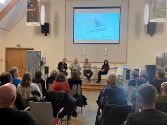 Am 13. März 2023 machte die ÖKOFILMTOUR 2023 Station in der Darre in Lieberose. Auf Einladung des Fördervereins Nationalpark Lieberoser Heide e. V. und des Fördervereins Lieberose e. V. wurde der Film Ware Wald gezeigt. Ca. 50 interessierte Bürgerinnen und Bürger waren gekommen, um den Film zu sehen und dem anschließenden Filmgespräch zu folgen. Dazu war die Vorsitzende des Nationalparkvereins, Isabell Hiekel, im Gespräch mit den für die Lieberoser Heide zuständigen Oberförstern Axel Becker, Arne Barkhausen und Claus Seliger. Der Film hatte in einer recht ausgewogenen Art die Schere zwischen dem Bedarf einer vermehrten Holznutzung und dem Schutzgedanken für den Wald deutlich gemacht. Unserem Wald geht es nicht gut. Der Klimastress mit Trockenheit und Hitze setzen ihm zu und dazu verlieren wir landesweit Wald durch Waldbrände. Für die Lieberoser Heide besteht die große Aufgabe, die meist monotonen Kiefernforste in artenreiche
