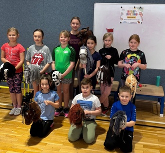 Zum Schuljahresbeginn erzählten wir unseren Sportlerinnen vom Hobby Horsing im Hort. Kurze Zeit später gab es erneut eine Überraschung für uns. Frau Kunath, unsere Sportlehrerin, lud zur Hobby Horsing-AG ein. Unsere Schule war eine von wenigen, die vom Märkischen Turnerbund ausgewählt wurde und vier Pferde mit passenden Zubehör überreicht bekam.