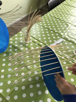 Weiter ging es am Dienstag und Mittwoch, dem 02.04. und 03.04.2024 mit dem zweitägigen Korbflecht-Projekt. Hier haben insgesamt 5 Jugendliche zwischen 10 und 20 Jahren teilgenommen. Aus Holz, Peddigrohr und Farbe konnten sie sich einen Organizer inkl. kleiner Pinnwand und einen Stiftebecher basteln/flechten. Doreen Graf-Kolodziej hat hierfür eine Vorlage gebastelt und Schritt für Schritt Anleitungen dazu gegeben. Damit es für die Finger und die Schultern nicht zu anstrengend wurde, gab es kleine Pausen, um sich mal auszuschütteln. Zur Unterstützung und für die Zubereitung eines Mittagssnacks stand ich am ersten Tag zur Verfügung. Zum Mittag am ersten Tag gab es Wraps und am zweiten Tag leckere Hotdogs. Somit war auch für das leibliche Wohl gesorgt.