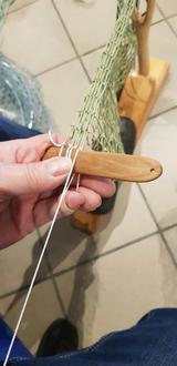 Nach der Kaffeepause wurde das traditionelle Stricken der Fanggeräte, wie Netze und Bungen, durch Herrn Lutz Rhenus demonstriert. Die Referenten nahmen uns an diesem Samstag mit auf eine Zeitreise, als im Spreewald Fischereirechte vergeben und die Fanggeräte selbst gebaut wurden. Durch praktische Strickübungen wurden nicht nur die Spintefrauen, sondern auch der Fischereinachwuchs an die traditionelle Handarbeit herangeführt.