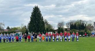 Zum Heimspiel der ersten Mannschaft durfte dann unser Nachwuchs zusammen mit den Teams auflaufen. Für alle ein großes Highlight.