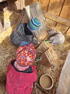Im Rahmen unseres gleichnamigen Projektes besucht die Zwergengruppe der Kita Boschezwerge seit Februar 2025 alle zwei Wochen Montags die Farm in Goyatz. Mittlerweile gehört dieses liebgewonnene Ritual fest zu unseren Aktivitäten und wird aktiv von den Kindern eingefordert. Regelmäßig freuen sich die Jüngsten über die tierischen Begegnungen und die anfallenden Aufgaben, die sie übernehmen dürfen. Am allerliebsten füttern die Kinder die diversen gefiederten oder befellten Farmbewohner. Dafür bringen sie äußerst gern abwechslungsreiche Futterspenden von zu Hause mit. So kann jedes Tier entsprechend seiner Bedürfnisse leckere Snacks erhalten und ganz nebenbei lernen die Kinder die Futterlieben der Tiere und deren Handhabung kennen. Auch das Anpacken beim Ausmisten, Stroh einstreuen, Eier aus den Nestern holen oder Trinkwasser verteilen übernehmen die Kids sehr gern. Im Sinne ganzheitlicher Lernerfahrungen erleben die Kinder dadurch direkt und unmittelbar auch den täglichen Arbeitsaufwand rund um die Pflege der Tiere und ihrer Behausungen.