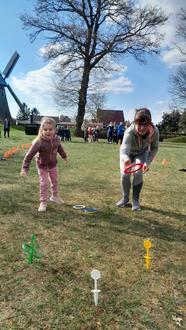 Auf dem Gelände der Holländerwindmühle in Straupitz erwartete die Kinder eine tolle Überraschung. Gemeinsam mit ihren Eltern, Großeltern und Geschwistern und dem Vereinsvorstand Christiane Bramer und Ben Smalla wurde in einer kleinen Osterhasensportrunde die große Suche vorbereitet. Die Vorfreude wurde immer größer.