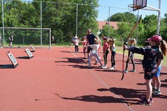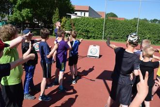 Die Wartezeit zwischen den Wettkampfstationen konnten sich die Kinder am Riesen-Dart, auf der Hindernisstrecke, auf der Hüpfburg und beim Bogenschießen vertreiben. Die Reaktionsschnelligkeit testeten sie an der Lichterstation.