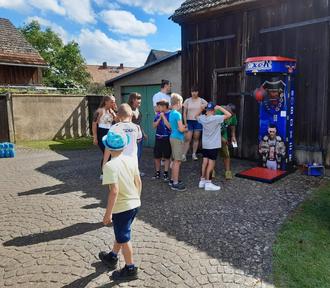 Die Eltern unserer Jüngsten bereiteten verschiedene Stationen vor, die von den Kindern sehr gern angenommen wurden. Beim Kinderschminken, Kleben von Tattoos, Schubkarrenwettlauf und an der Malstraße fühlten sich die Kleinsten richtig wohl und waren mit Begeisterung dabei. Eines der größten Anziehungspunkte war dann doch der Boxautomat, hier war sogar Schlange stehen angesagt. Der Softeisspender war ebenso bei Groß und Klein heiß begehrt.