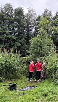 Am 05.08.2025 fand der erste generationenübergreifende Aktionstag, zwischen dem Freizeittreff KiJu und dem Seniorenbeirat Straupitz statt. Dazu traf man sich am großen Teich im Straupitzer Schlosspark. Der Einladung des Seniorenbeirates waren sieben junge Angler im Alter von 10 bis 15 Jahren gefolgt, die unter Anleitung von Angelfreund Gerd Schulze ihr Angelpotential testen wollten. Leider war das Wetter nicht auf unserer Seite und auch das Anglerglück meinte es nicht gut mit uns. Dennoch konnten drei, vier kleinere Fische, von der Jugend gefangen werden. Weiterhin wurde auch ein großer Baum geangelt, der sich aber davon wenig beeindruckt zeigte und einfach seinen festen Standpunkt klar machte. Was letztlich zum Verlust von Equipment führte. Aufgrund des nichtendenwollenden Regens wurde die Aktion dann doch lieber vorzeitig beendet. Resümee: die Jugendlichen zeigten ihre Begeisterung für die Bewegung an der Luft, in der Umwelt und für den Angelsport, einige werden sicher bald den örtlichen Anglerverein in Straupitz verstärken. Begleitet wurde der Aktionstag von den Jugendsozialarbeiterinnen des Amtes Lieberose/Oberspreewald Jana Beinio und Anke Schönmuth.