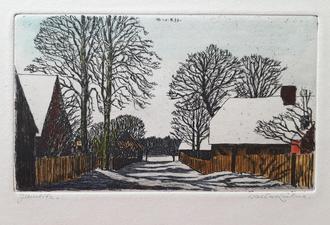 Walter Kühne, Jamlitz, Radierung, koloriert, 13 x 8 cm (Privatbesitz)