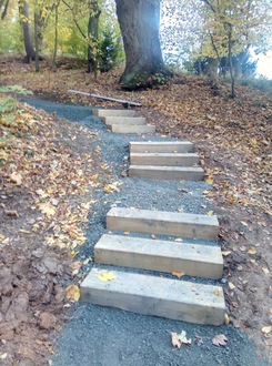 Auf dem Flurstück der Gemeinde Struppen wurde die Zuwegung zur neu instand gesetzten Brücke zur Rhododendronschlucht in Angriff genommen.
