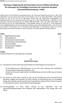 Der Gemeinderat beschließt die als Anlage beigefügte Neufassung der Feuerwehrkostensatzung (Satzung zur Regelung des Kostenersatzes und zur Gebührenerhebung für Leistungen der Freiwilligen Feuerwehr der Gemeinde Struppen) sowie das dazugehörige Kostenverzeichnis.
