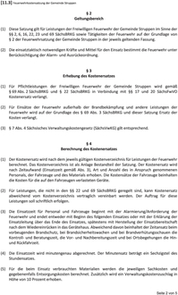| (1) Kostenersatz im Sinne dieser Satzung beinhaltet die Aufwendungen der Feuerwehr für | |