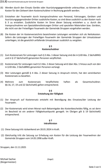 1. Kostenersatz für Leistungen des Personals der Feuerwehr