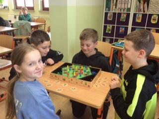 3 Klassenzimmer hatten sich in kürzester Zeit in eine richtige „Spieleoase“ verwandelt. Die Kinder und ihre Gäste hatten nun die Qual der Wahl! Eine riesige Auswahl an Brettspielen, Kartenspielen, Puzzeln und Logikspielen standen zur Auswahl und jeder konnte nach Lust und Laune seine Auswahl treffen. Die einen vergnügten sich bei einer zünftigen „Mensch ärgere dich nicht!“- Runde, andere erprobten ihr Wissen bei einem Quiz und wieder andere vergaßen die Zeit bei einer spannenden Schachpartie. Für jeden