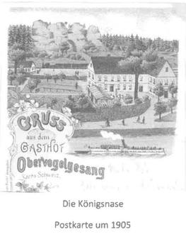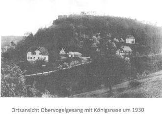 Unmittelbar über der Bahnstation Obervogelgesang ragt am Elbausgang des Struppenbachtales ein Felsenriff auf, dessen nach Norden gerichtete Spitze als Königsnase bekannt ist. Die Bezeichnung Königsnase finden wir noch für das östliche Felsenhorn der Festung Königstein und für einen Felszacken im Rathener Gebiet.