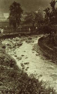 Zerstörtes Bachbett an der Mündung Hochwasser 1957