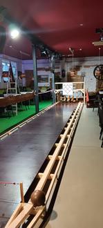 Diese Bahn war jetzt im Januar einen Monat in Betrieb. Der Besuch zur Nutzung wurde "zögerlich" in Anspruch genommen. Durch die Veranstaltungen in der Kulturscheune kann die Kegelbahn nur zeitweise aufgebaut werden.
