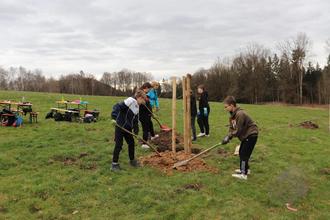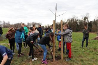 Die Agrarproduktion „Am Bärenstein“ Struppen eG hat die Schüler der 5. Klasse der Oberschule Königstein, der Nationalparkschule, zu einer Baumpflanzung von 15 hochstämmigen Obstbäumen eingeladen.