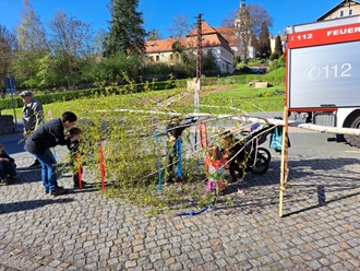 Für die Kinder fuhr die Feuerwehr ihre Runden und an der Feuerschale konnte Knüppelteig gebacken werden.
