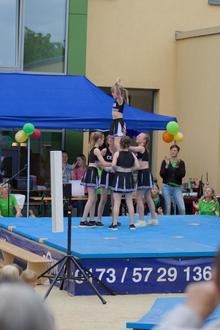 Danach begann das bunte Treiben im und um das Kinderhaus herum. Viele Stände mit Leckereien, Getränken waren aufgebaut. Es gab Sport und Spiel im Schulhof, ein Glücksrad, den Bastelbereich, Kinderschminken, Hüpfburg und die Jugendfeuerwehr war zu Gast. Auch die Stuntshow der Radfahrer wurde mit viel Applaus gewürdigt.